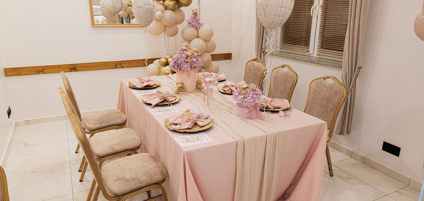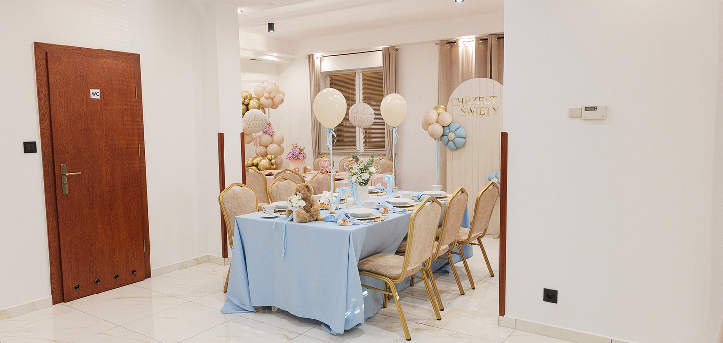 To momenty, które zostają w sercu na całe życie. Wyjątkowe baby shower, wzruszające chrzciny, pierwsze urodziny dziecka – każda z tych okazji zasługuje na piękną, ciepłą oprawę, która pozwoli Wam świętować w gronie najbliższych, ciesząc się każdą chwilą bez zbędnego stresu.Dlatego stworzyliśmy miejsce, w którym komfort, elegancja i domowa atmosfera łączą się w idealną całość.